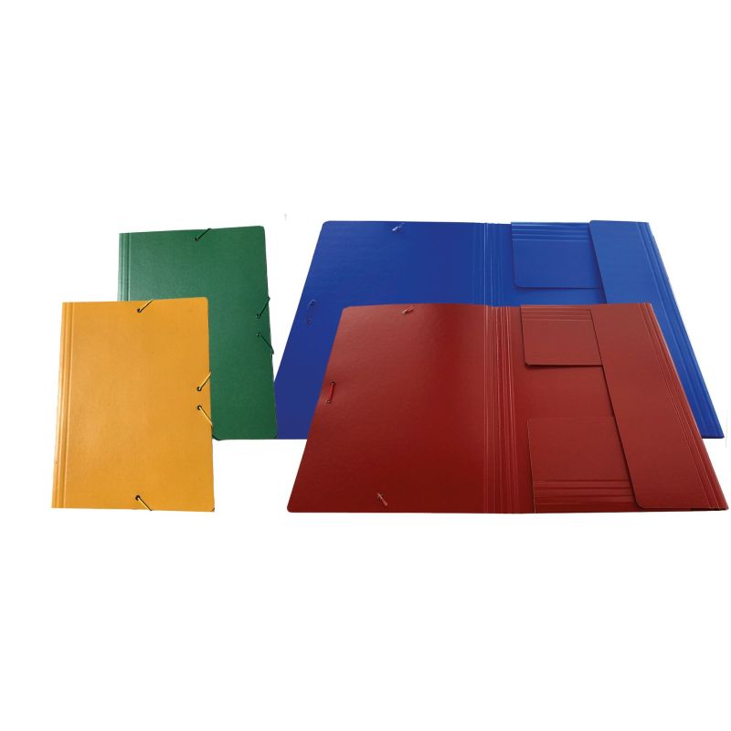 CBRIA: ¡Guarda tus documentos y trabajos en esta fantástica carpeta de gomas! -Realizada en cartón plastificado. -Resistente y flexible. -Colores vivos: amarillo, azul, rojo y verde. -Tres solapas para proteger los documentos. -Cierre con gomas terminadas en cierre de plástico. Especificaciones: Medidas: 34 cm x 25 cm. Tamaño folio. Se venden en paquetes de 10 unidades de cada color.
