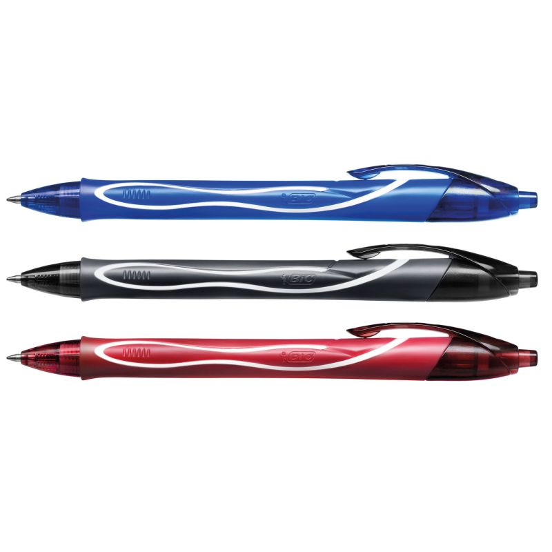 GELBIAZ: ¡Escribe más rápido que nadie con este bolígrafo de gel! - Cuerpo realizado en goma con grip, del color de la tinta. - Agarre ergonómico y cómodo que permite una escritura suave y rápida. - Tinta de gel con secado ultra rápido. - Punta retráctil de 0,7 mm. - Trazo de 0,3 mm. Especificaciones: Colores disponibles: azul, negro y rojo. Se vende en cajas de 12 unidades.