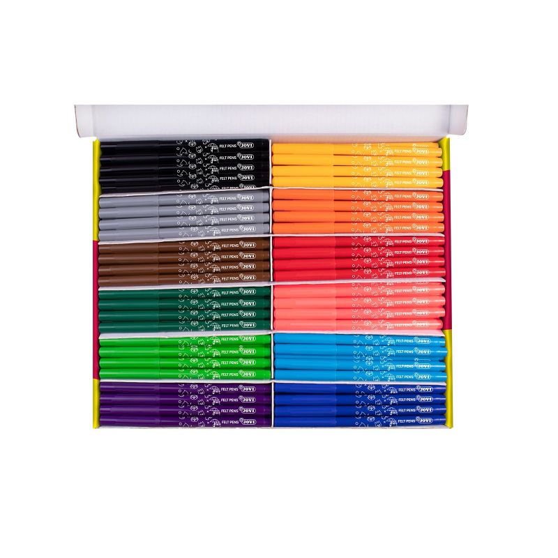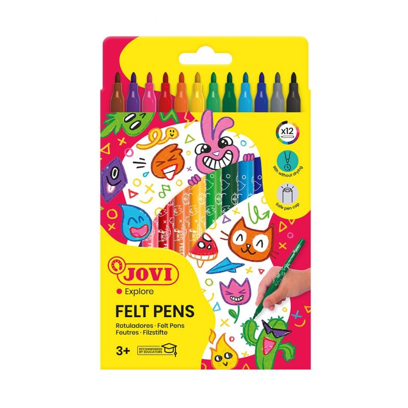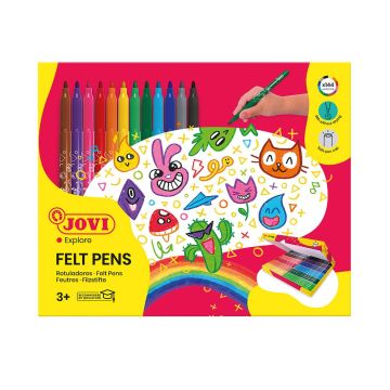 JROT12: ¡Crea composiciones llenas de alegría y luminosidad con este pack de rotuladores de punta fina! - Diseñados para que los más pequeños estimulen la imaginación y su creatividad. - Estimula la coordinación. - Desarrolla la motricidad fina. - Punta de fieltro. - Sistema de bloqueo en la punta que da resistencia ante la presión. - Colores vivos y luminosos. - Tinta super lavable en la mayoría de tejidos. Especificaciones: Se vende en pack de 12, 24 o 144 unidades. Colores surtidos.