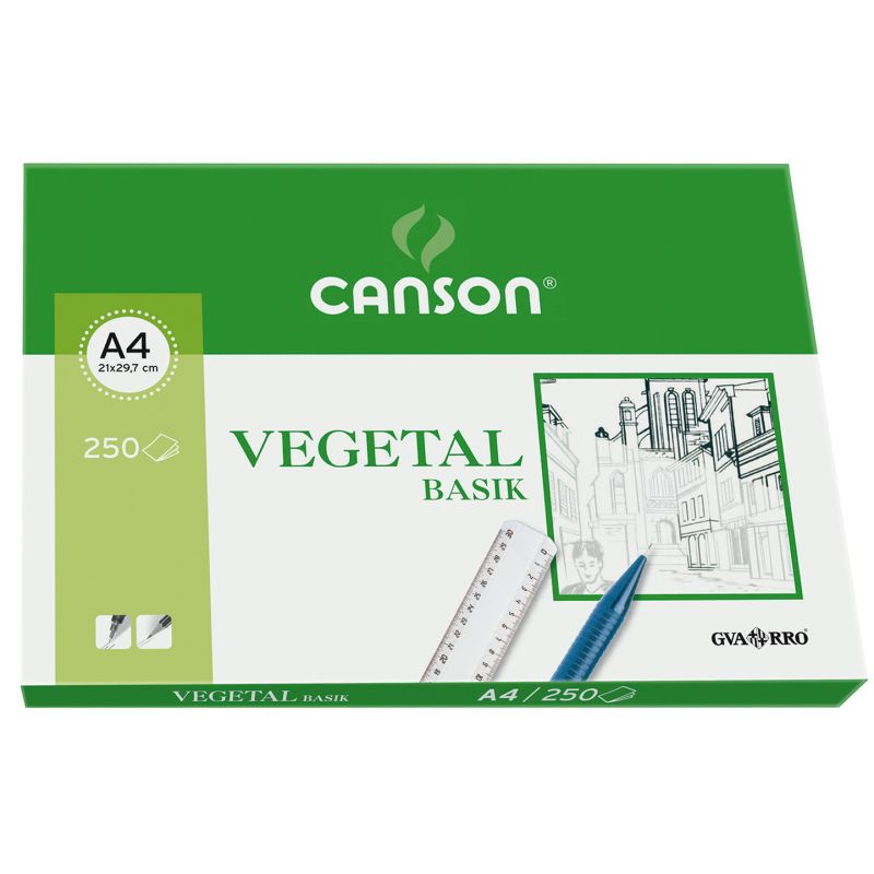 PAPVC: ¡Calca, esboza y mucho más con este papel vegetal de alta calidad! - Papel vegetal de 90 gramos. - Elevada transparencia. - Superficie regular y satinada. - Gran nitidez al trasluz. - Resistente a la tracción y al paso del tiempo. - Perfecto para composiciones de lápiz, tinta o rotulador. - Apto para impresión en todo tipo de impresoras. Especificaciones: Tamaño A4. Disponible en dos formatos: Blíster de 12 hojas. Caja de 250 hojas.