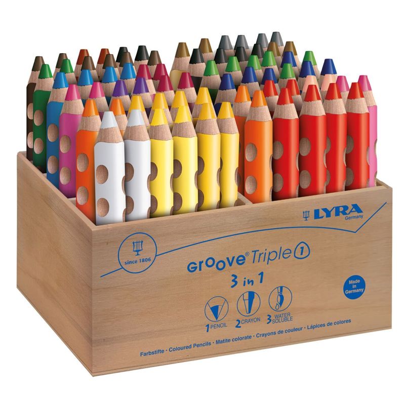 TRIPLE12: ¡Motiva a los más pequeños y despierta su lado artístico con estas ceras! - Estimula la creatividad y la imaginación. - Fomenta la motricidad y la coordinación. - Cuerpo triangular. - 10 milímetros de diámetro que permite un agarre cómodo. - Empuñadura realizada con grip natural, sin materiales añadidos. - Las hendiduras antideslizantes favorecen la correcta fijación de los dedos pulgar, índice y medio facilitando así la escritura. - Perfectos tanto para zurdos como para diestros. - Utilízalas en cualquier soporte, gracias a su tecnología 3 en 1: lápiz de color, cera y acuarela. Especificaciones: Medidas: 12 cm de largo. Elige tu formato favorito: 12 o 72 unidades. Colores surtidos.