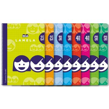 LAME80C2: ¡Comienza la aventura de la escritura con este fantástico cuaderno Lamela! - Cubiertas de cartón plastificado. - 80 hojas de 70 gramos. - Cuadrovía en azul. - Dos modelos diferentes: o Cuadrovía 2,5 mm. o Cuadrovía de 3 mm. o Cuadrovía de 4 mm. o Cuadrovía 5 mm. Especificaciones: Se venden en paquetes de 10 unidades. Tamaño folio. Colores surtidos.