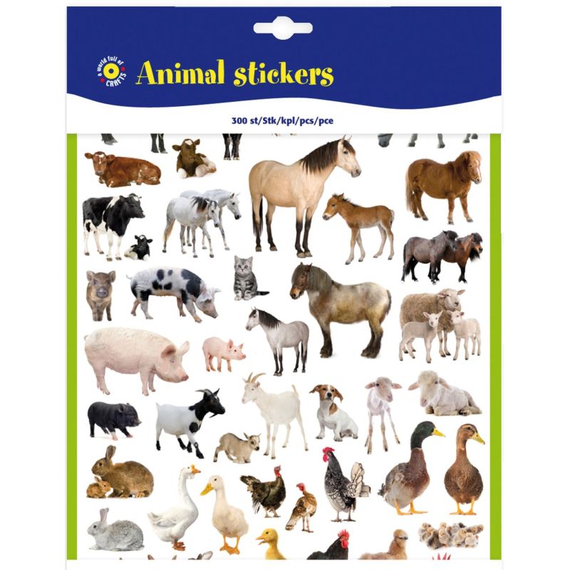 6 hojas con 300 pegatinas de animales de diferentes categorías.