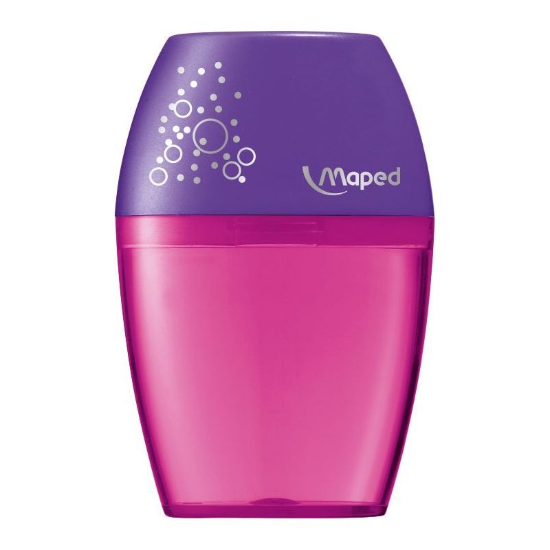 SHAKER1: ¡Afila tus lápices y colores donde sea gracias a este sacapuntas con depósito! - Apto para uso escolar. - Diseño que permite un mayor volumen de viruta. - Elige entre un orificio para lápices finos o dos orificios para lápices finos y gruesos. - Podrás utilizar tanto lápices hexagonales, como triangulares y redondos. - Cuchilla de acero afilada y resistente. - Colores vivos y brillantes. Especificaciones: Medidas: 6 cm de alto x 4,5 cm de ancho. Se venden en pack de: - 25 unidades, con un orificio. - 20 unidades, con dos orificios. Colores surtidos: azul turquesa, verde y fucsia.