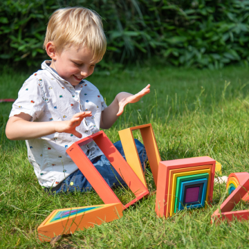 - Estimula la identificación de las diferentes formas geométricas: arcos, cuadrados, rectángulos y triángulos.