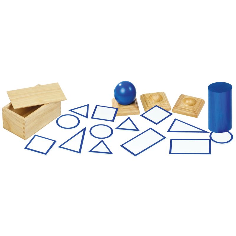 Incluye 3 soportes horadados para cuerpos geométricos tridimensionales.