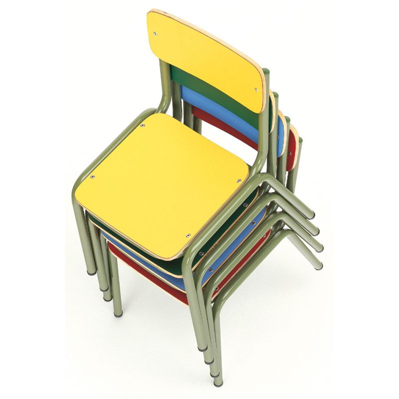 0401091G402: ¡Equipa tu espacio de trabajo con estas fantásticas sillas! - Realizada en materiales de alta calidad. - Podrás personalizarla eligiendo el color de la silla. - Asiento y respaldo estratificado en madera de alta resistencia. - Apilables para ocupar menos espacio. - Patas en tubo de acero. Especificaciones: PLAZO DE ENTREGA ENTRE 1-2 SEMANAS APROXIMADAMENTE. Estructura de haya maciza con esquinas redondeadas. Medidas: 31 cm x 30,5 cm x 36 cm de altura.