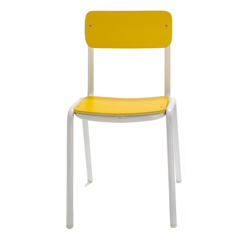 0401211G402: ¡Equipa tu espacio de trabajo con estas fantásticas sillas! - Realizada en materiales de alta calidad. - Podrás personalizarla eligiendo el color de la silla. - Asiento y respaldo estratificado en madera de alta resistencia. - Apilables. - Estructura en tubo de acero de 20 mm de diámetro. Especificaciones: Medidas: 58 cm x 37 cm x 33 cm x 32 cm de altura.