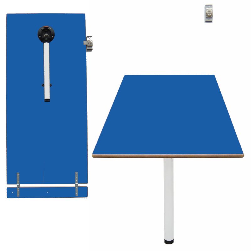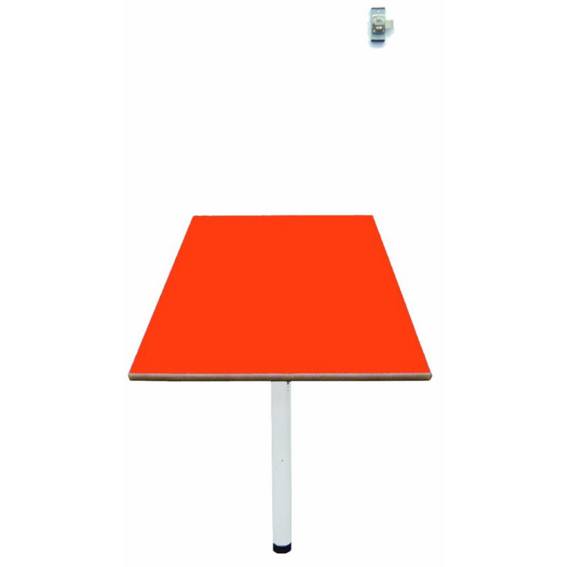 0401395B54AM: ¡Equipa tu espacio de trabajo con esta fantástica mesa! - Realizada en materiales de alta calidad. - Podrás personalizarla eligiendo el color del tablero. - Forma rectangular con cantos redondeados. - Abatible a la pared de forma sencilla. - Consigue un espacio diáfano y multifuncional. Especificaciones: PLAZO DE ENTREGA ENTRE 1-2 SEMANAS APROXIMADAMENTE. Medidas: 150 cm x 74 cm. Disponible en dos alturas: 54 cm y 60 cm. Tablero DM de 2,1 cm de grosor con cantos redondeados. Pata metálicas de 30 cm de diámetro.