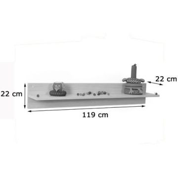 4040621: ¡Equipa tu espacio de trabajo con esta balda con soporte trasero! - Realizado en madera de alta calidad. - Tablero de melamina de haya de 19 mm. - Sistema robusto de fijación mediante taladro a la pared. - Elige entre las medidas disponibles: - 22 cm x 61 cm x 22 cm de alto. - 22 cm x 80 cm x 22 cm de alto. - 22 cm x 119 cm x 22 cm de alto. Especificaciones: PLAZO DE ENTREGA APROXIMADAMENTE 3-4 SEMANAS. Garantía del mobiliario: 5 años por defecto de fabricación.
