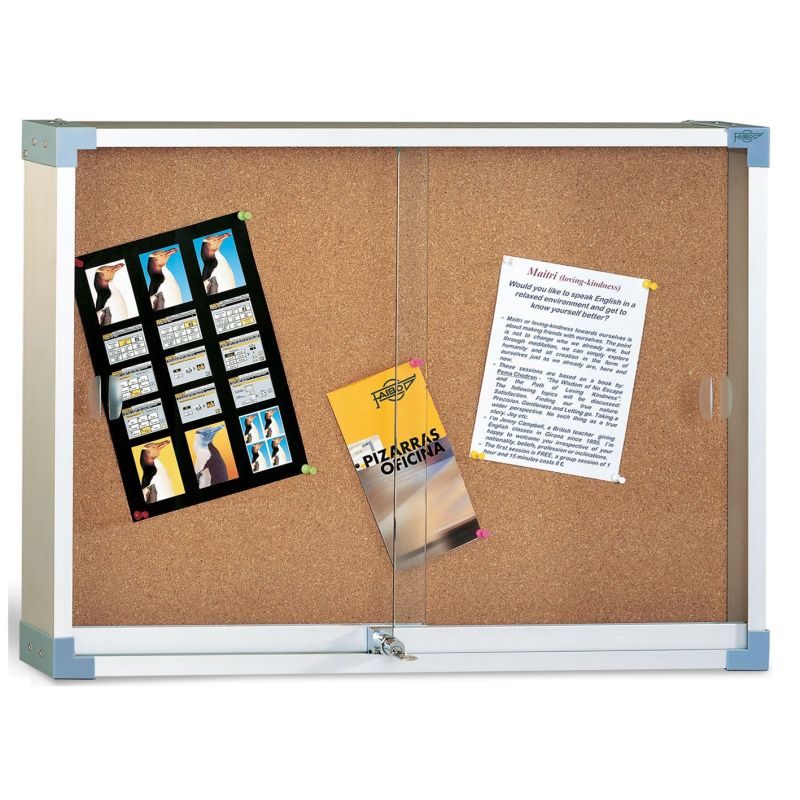 VIT2: ¡Muestra de forma fácil y sencilla toda tu información con esta práctica vitrina de puertas correderas! - Realizada en aluminio anodizado en color plateado. - Puerta corredera de cristal con cerradura. - Corcho en el fondo para colgar documentos. - Elige entre los dos tamaños disponibles: - VIT1 de 60 x 80 cm. - VIT2 de 90 x 120 cm. - VIT de 100 x 146 cm. Especificaciones: Aptas para interior.