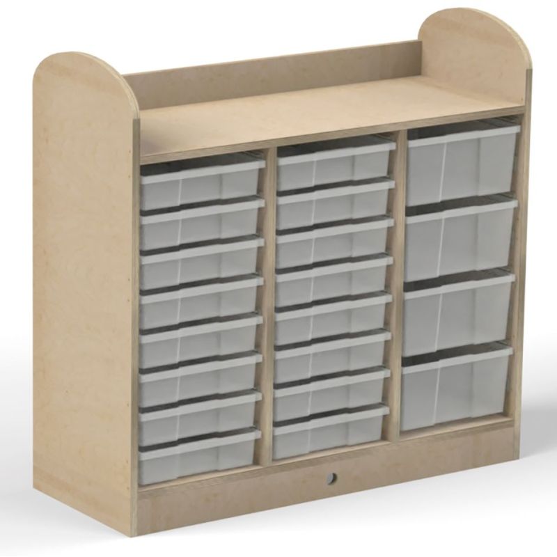 - Tres columnas con gavetas y cubetas de mayor tamaño.