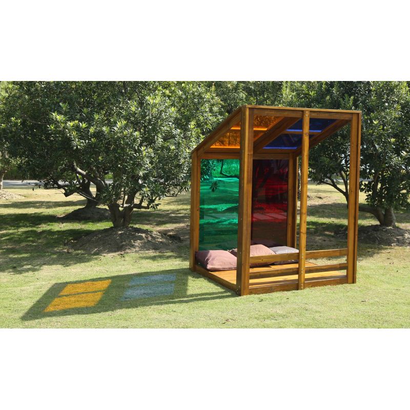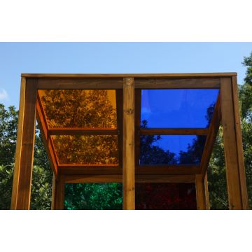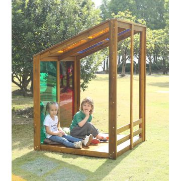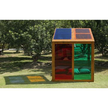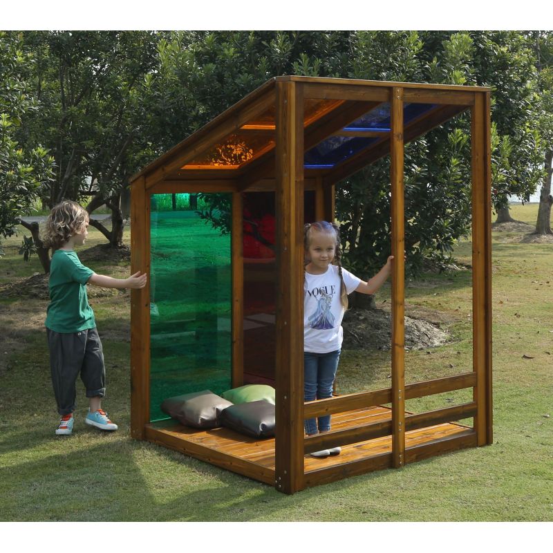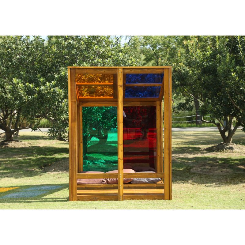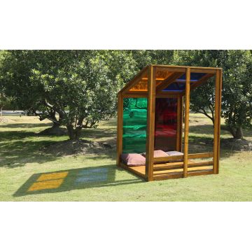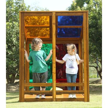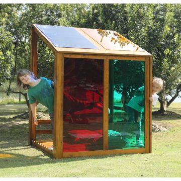 405012: ¡Juega sin parar en esta fantástica casita arcoíris para exterior! - Favorece la motricidad y la coordinación. - Desarrolla el juego simbólico. - Favorece la socialización y la autonomía. - Estimula la imaginación y la creatividad. - Las ventanas de colores hacen que la luz produzca diferentes efectos. - NO incluye cojines. Especificaciones: Realizada en madera de pino con cristales de vidrio acrílico. Medidas: 138 cm de ancho x 122 cm de largo x 180 cm de alto. Se sirve parcialmente montado. Incluye instrucciones de montaje. Garantía de 5 años. Para cumplir la normativa de seguridad de juegos de exterior: EN 1176. Se necesitan ganchos de anclaje según el suelo donde se vaya a instalar: cemento o césped.