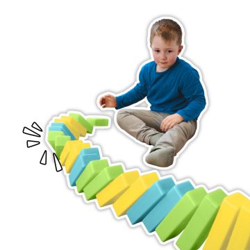 - 30 bloques que forman una torre de equilibrio y un dominó gigante.